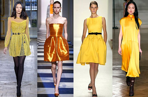 Классика стиля - серный цвет. Но нужно учесть, что консервативное платье этого цвета можно украсить блестящим элементом - лучше всего золотым или желтым. В качестве дополнения образа может выступить ожерелье, поясок, бретели, бант и так далее.